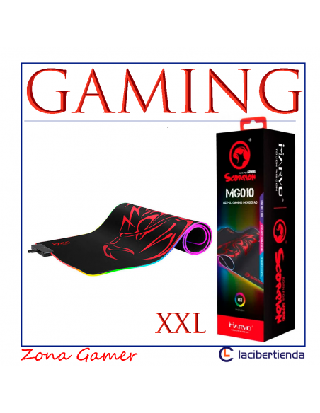 Scorpion MA-MG10 es una alfombrilla XXL con luz RGB que por su tamaño te permite alojar tanto el teclado como el ratón. Está fabricada en microfibra con estructura de alta densidad para un mayor control del ratón. Dispone de un contorno flexible iluminado RGB con 7 colores y 3 efectos.