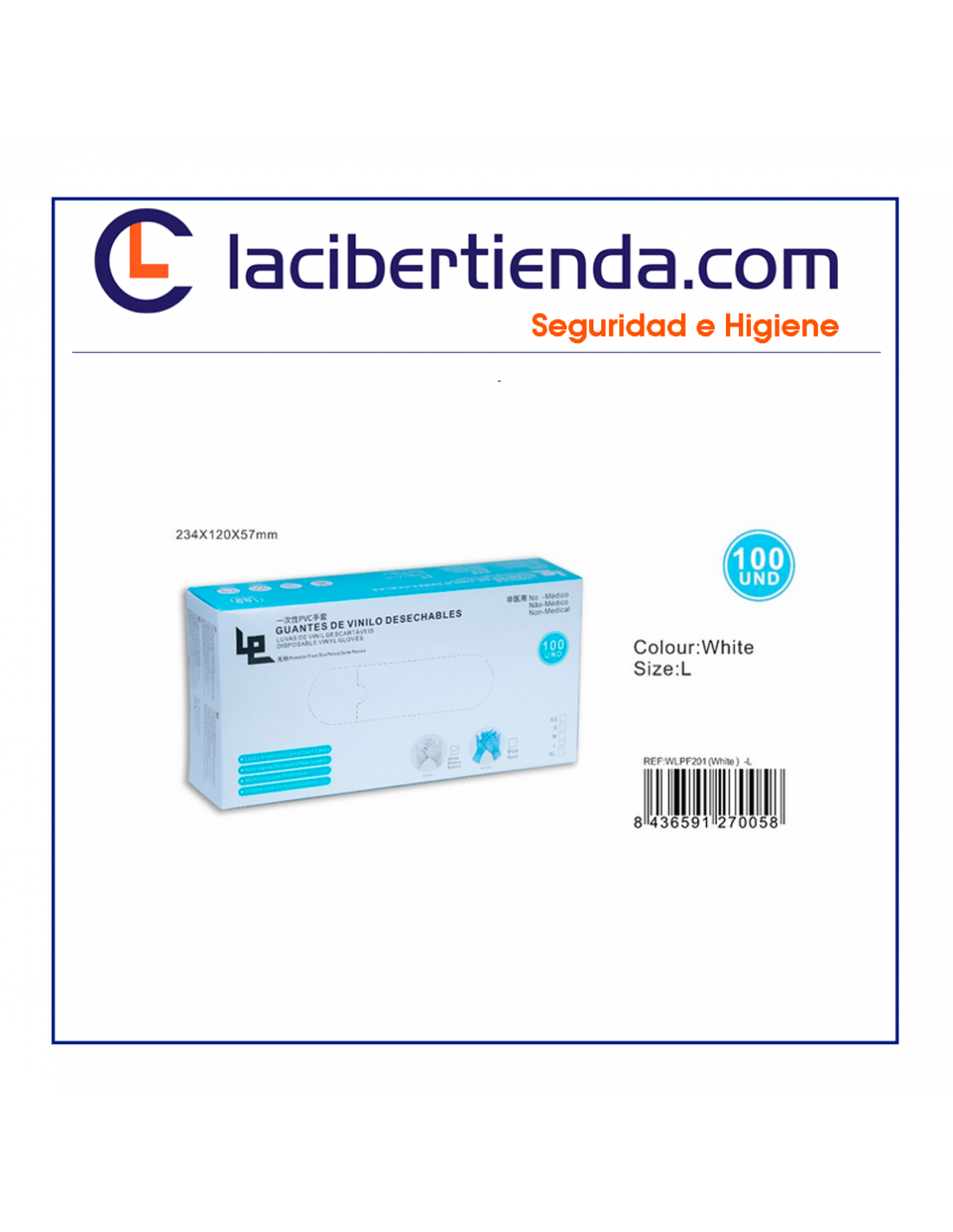 GUANTES DESECHABLES VINILO 100 UDS AZULES/TALLA L (NO MEDICAL)