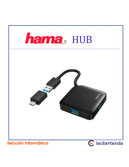 HUB E-USB/USB TIPO C C/ADAP 4 PUERTOS 3.1 5 Gbps,+USB-C